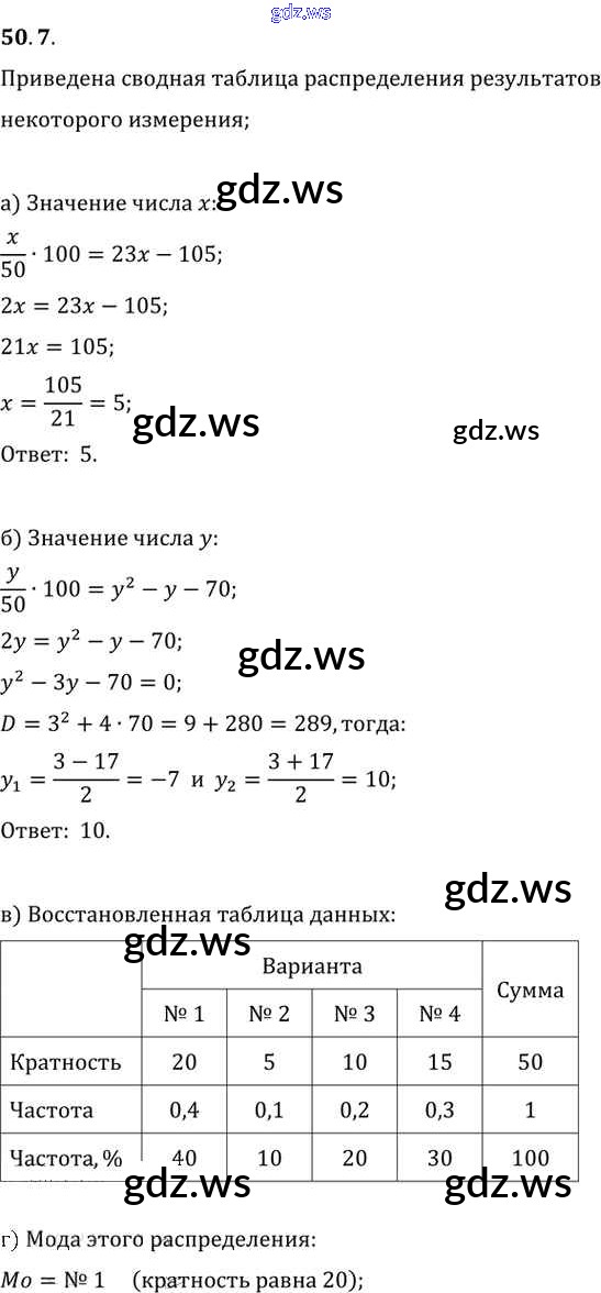 Готовый и полный ответ к §50. Статистическая обработка данных Глава 9 - Алгебре 11 класс Мордкович Задачник Базовый уровень ФГОС