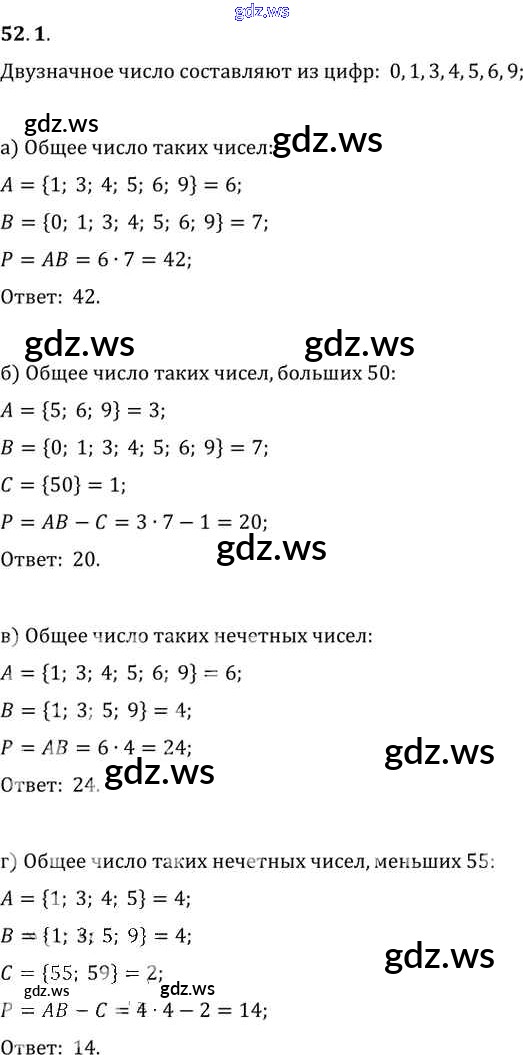 Готовый и полный ответ к §52. Сочетания и размещения Глава 9 - Алгебре 11 класс Мордкович Задачник Базовый уровень ФГОС