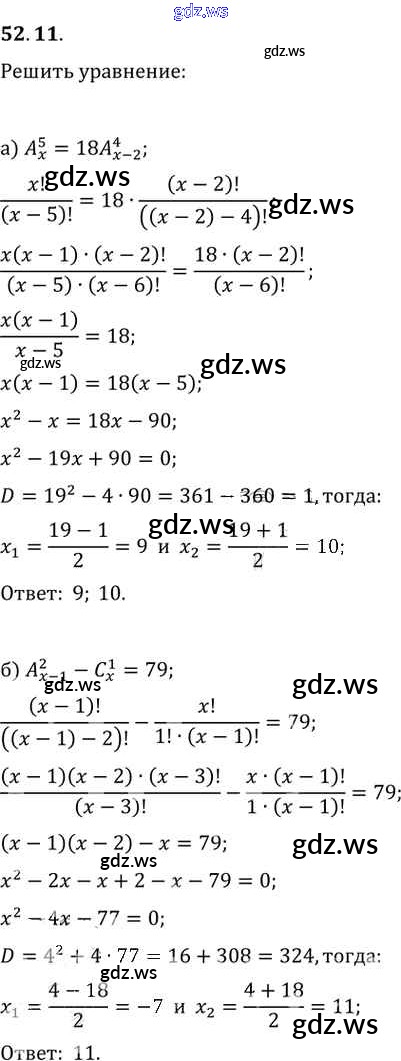 Готовый и полный ответ к §52. Сочетания и размещения Глава 9 - Алгебре 11 класс Мордкович Задачник Базовый уровень ФГОС