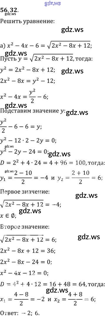 Готовый ответ §56. Общие методы решения уравнений Глава 10 - Алгебре 11 класс Мордкович Задачник Базовый уровень ФГОС