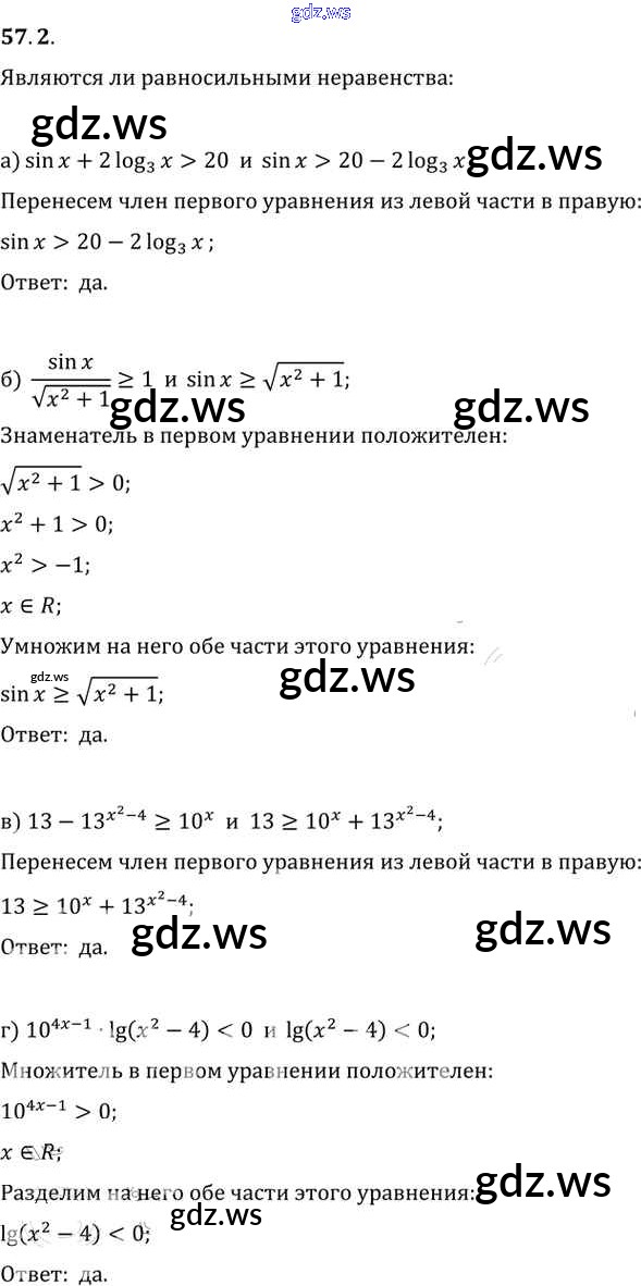 Готовый ответ §57. Решение неравенств с одной переменной Глава 10 - Алгебре 11 класс Мордкович Задачник Базовый уровень ФГОС