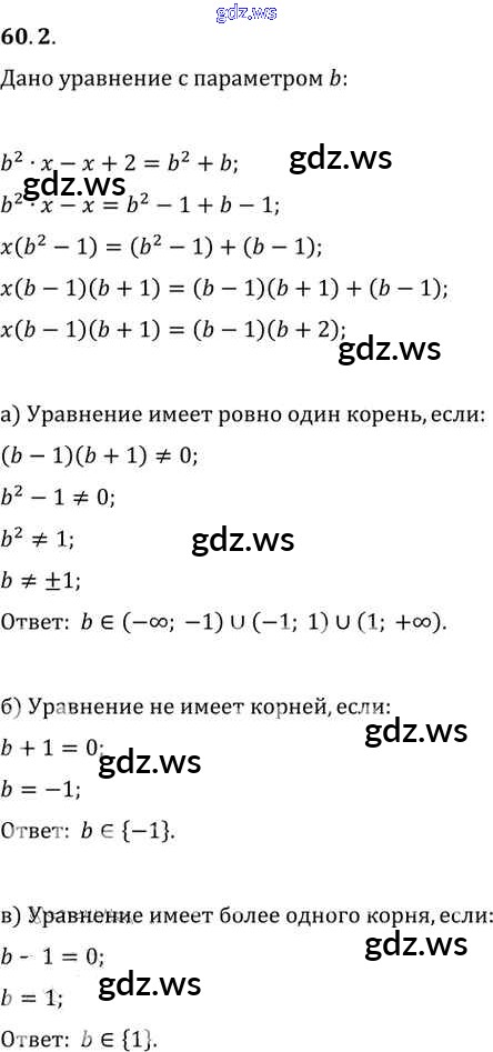 Готовый и полный ответ к §60. Задачи с параметрами Глава 10 - Алгебре 11 класс Мордкович Задачник Базовый уровень ФГОС