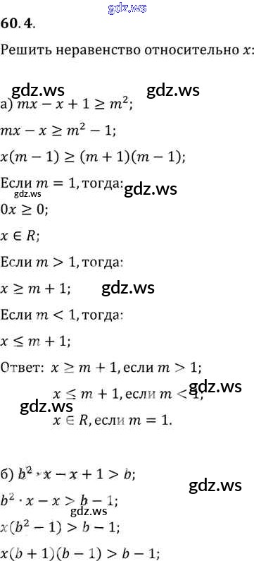 Готовый и полный ответ к §60. Задачи с параметрами Глава 10 - Алгебре 11 класс Мордкович Задачник Базовый уровень ФГОС