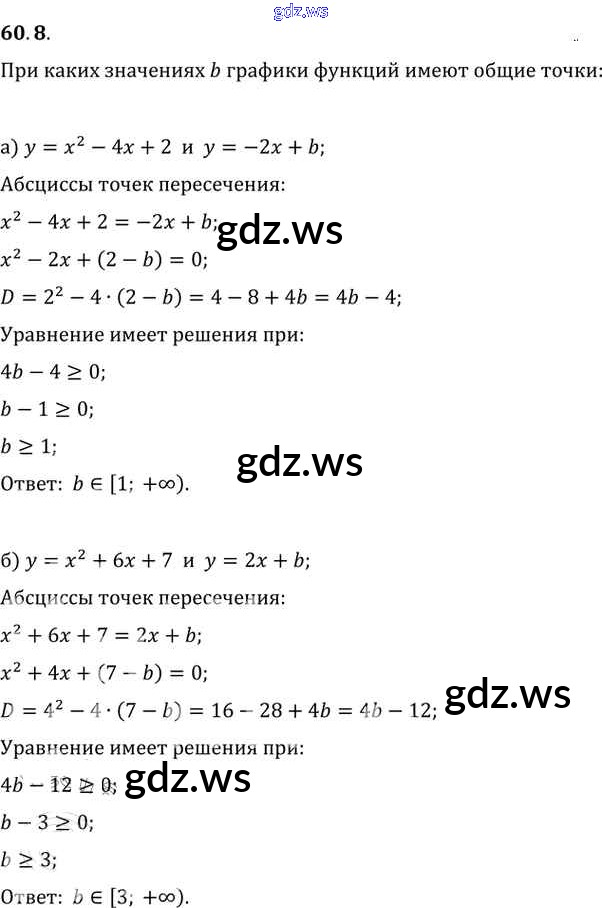 Готовый и полный ответ к §60. Задачи с параметрами Глава 10 - Алгебре 11 класс Мордкович Задачник Базовый уровень ФГОС