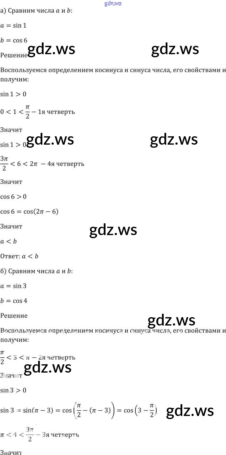 Готовый и полный ответ к §6. Синус и косинус. Тангенс и катангенс Глава 2 - Алгебре 11 класс Мордкович Задачник Базовый уровень ФГОС