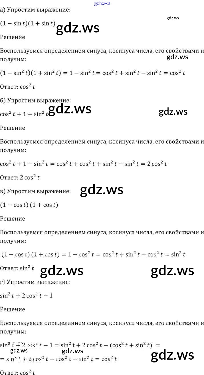 Готовый и полный ответ к §7. Тригонометрические функции числового аргумента Глава 2 - Алгебре 11 класс Мордкович Задачник Базовый уровень ФГОС