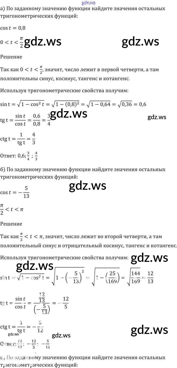 Готовый и полный ответ к §7. Тригонометрические функции числового аргумента Глава 2 - Алгебре 11 класс Мордкович Задачник Базовый уровень ФГОС