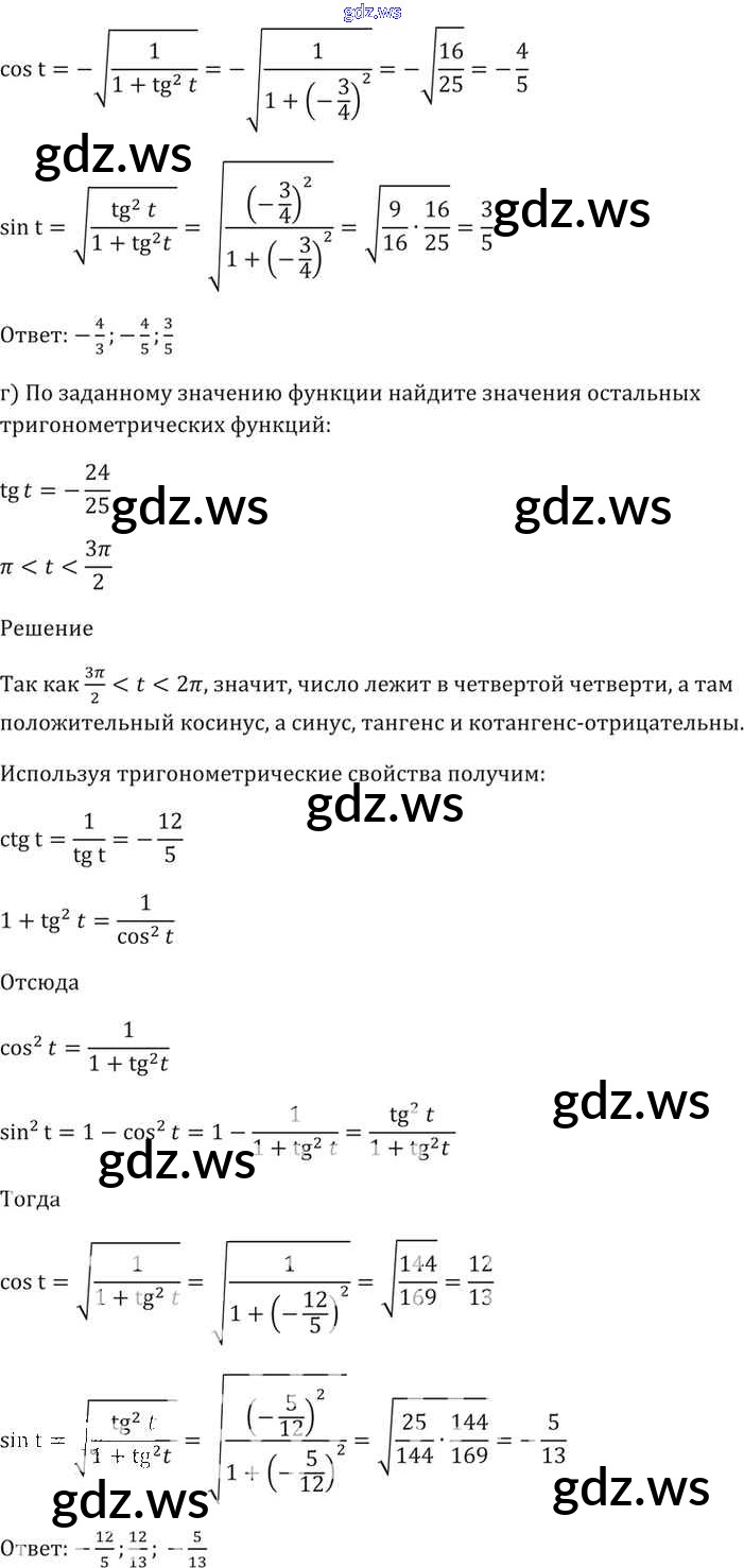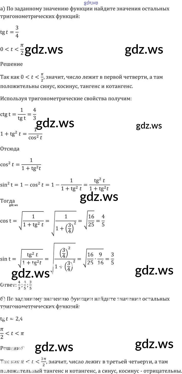Готовый и полный ответ к §7. Тригонометрические функции числового аргумента Глава 2 - Алгебре 11 класс Мордкович Задачник Базовый уровень ФГОС