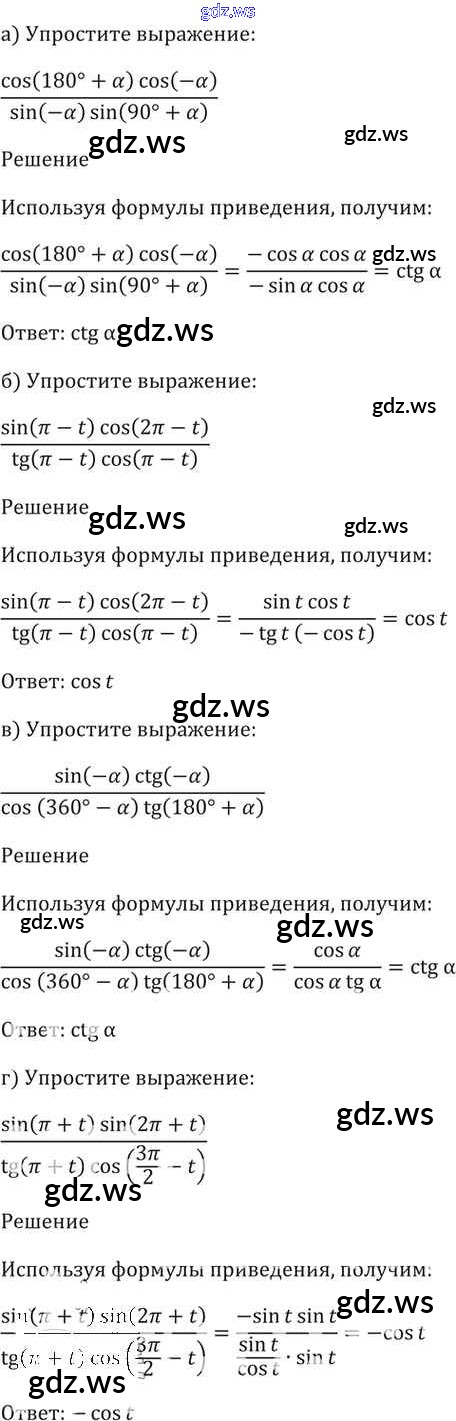 Готовый ответ §9. Формулы приведения Глава 2 - Алгебре 11 класс Мордкович Задачник Базовый уровень ФГОС