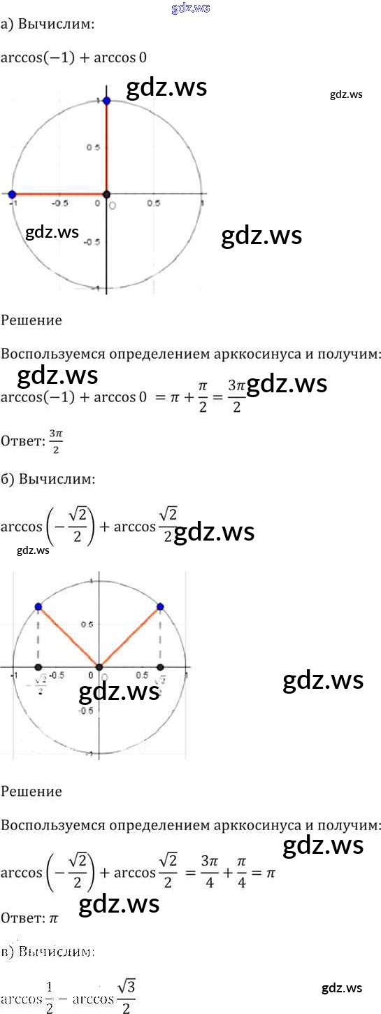 Готовый ответ §15. Арккосинус. Решение уравнения cos t = a Глава 3 - Алгебре 11 класс Мордкович Задачник Базовый уровень ФГОС