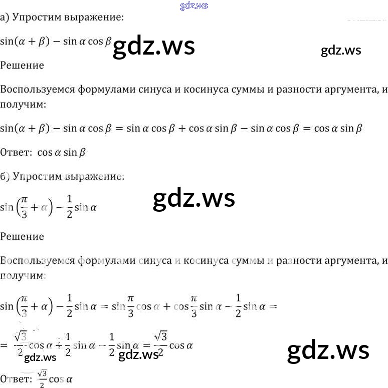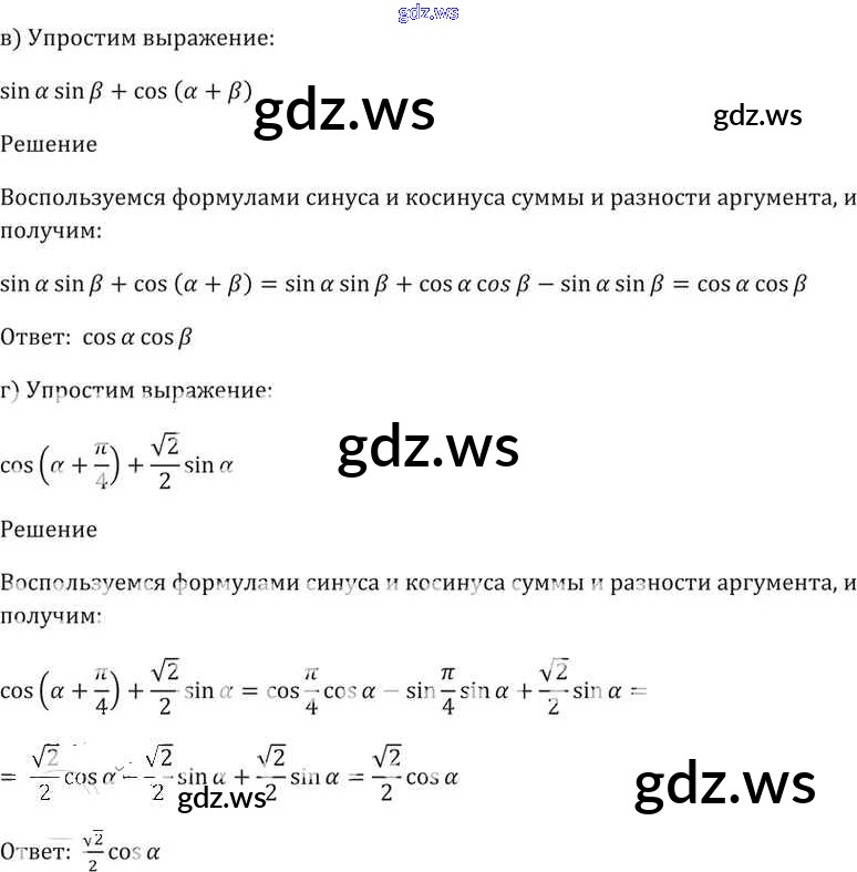 Готовый ответ §19. Синус и косинус суммы и разности аргументов Глава 4 - Алгебре 11 класс Мордкович Задачник Базовый уровень ФГОС