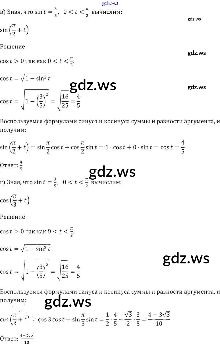Готовый ответ §19. Синус и косинус суммы и разности аргументов Глава 4 - Алгебре 11 класс Мордкович Задачник Базовый уровень ФГОС