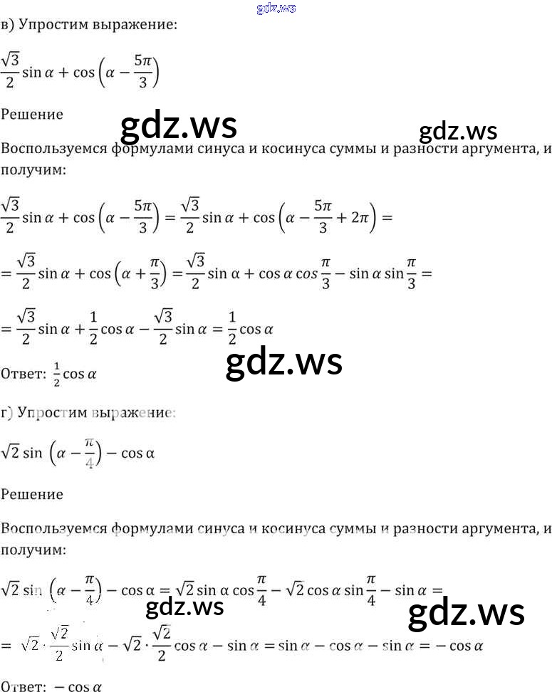 Готовый ответ §19. Синус и косинус суммы и разности аргументов Глава 4 - Алгебре 11 класс Мордкович Задачник Базовый уровень ФГОС