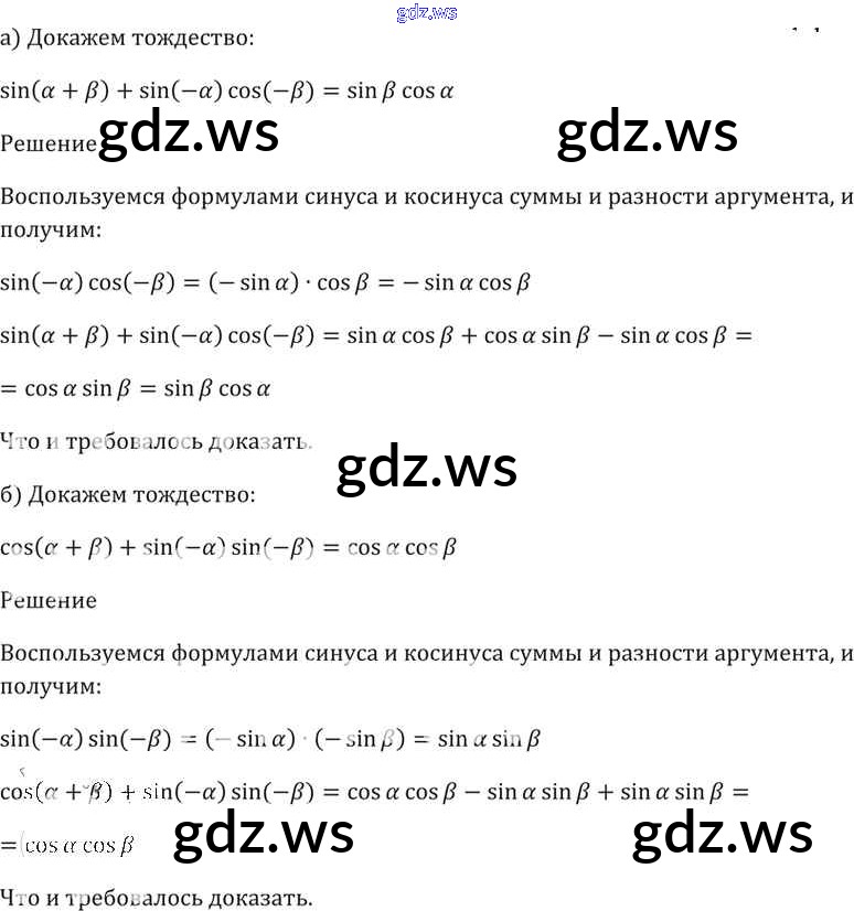 Готовый ответ §19. Синус и косинус суммы и разности аргументов Глава 4 - Алгебре 11 класс Мордкович Задачник Базовый уровень ФГОС
