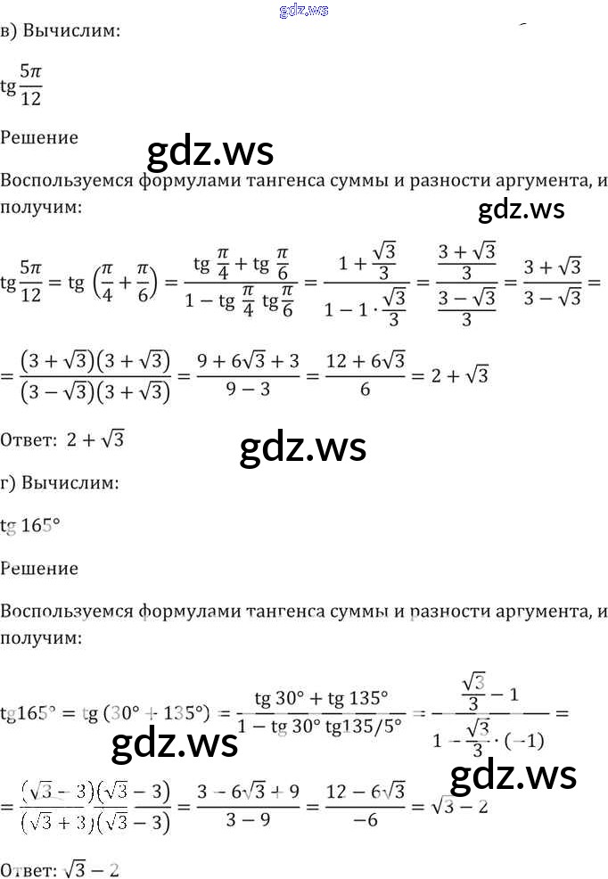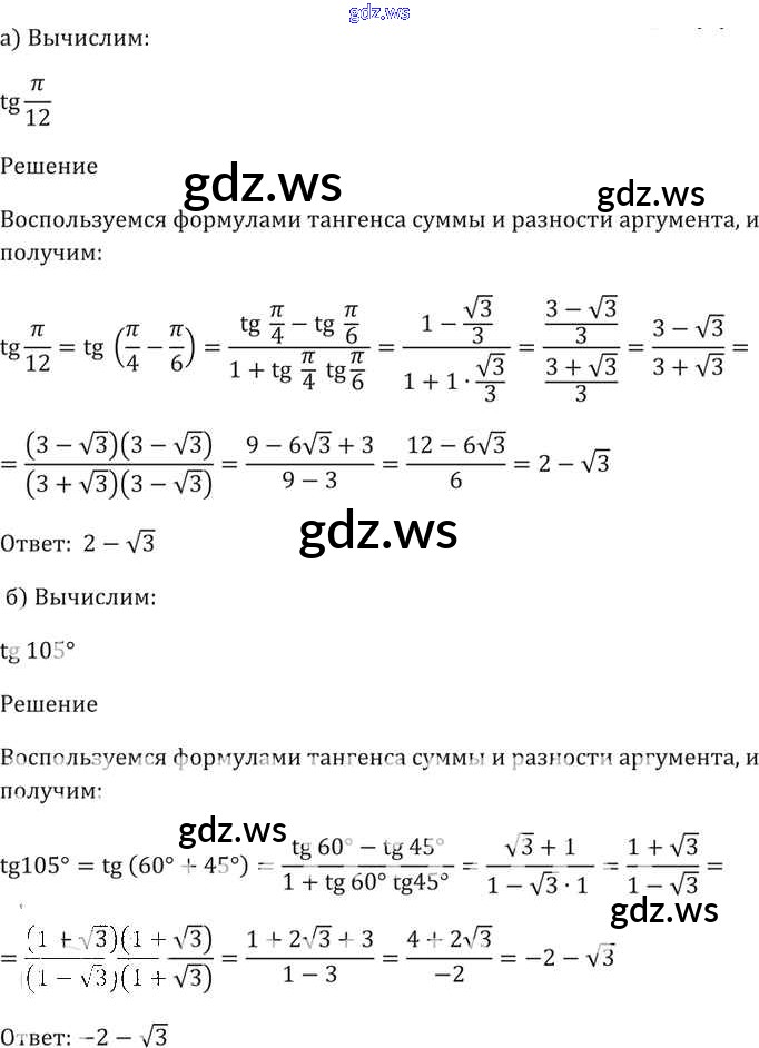 Готовый и полный ответ к §20. Тангенс суммы и разности аргументов Глава 4 - Алгебре 11 класс Мордкович Задачник Базовый уровень ФГОС