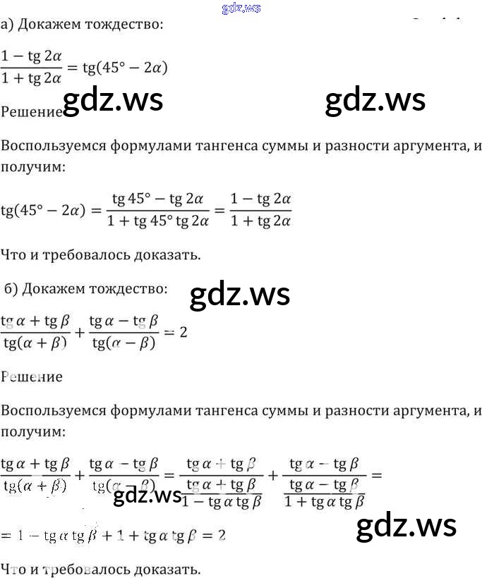Готовый и полный ответ к §20. Тангенс суммы и разности аргументов Глава 4 - Алгебре 11 класс Мордкович Задачник Базовый уровень ФГОС