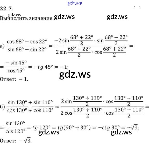Готовый и полный ответ к §22. Преобразование суммы тригонометрических функций в произведения Глава 4 - Алгебре 11 класс Мордкович Задачник Базовый уровень ФГОС