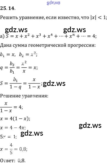 Готовый и полный ответ к §25. Сумма бесконечной геометрической прогрессии Глава 5 - Алгебре 11 класс Мордкович Задачник Базовый уровень ФГОС