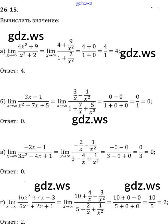 Готовый и полный ответ к §26. Предел функции Глава 5 - Алгебре 11 класс Мордкович Задачник Базовый уровень ФГОС