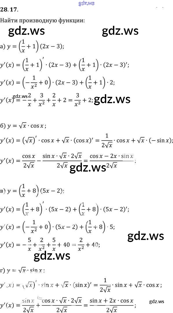 Готовый и полный ответ к §28. Вычисление производных Глава 5 - Алгебре 11 класс Мордкович Задачник Базовый уровень ФГОС