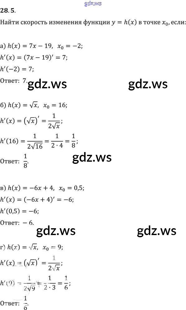 Готовый и полный ответ к §28. Вычисление производных Глава 5 - Алгебре 11 класс Мордкович Задачник Базовый уровень ФГОС