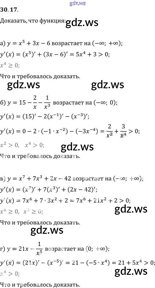 Готовый ответ §30. Применение производной для исследования функций на монотонность и экстремумы Глава 5 - Алгебре 11 класс Мордкович Задачник Базовый уровень ФГОС