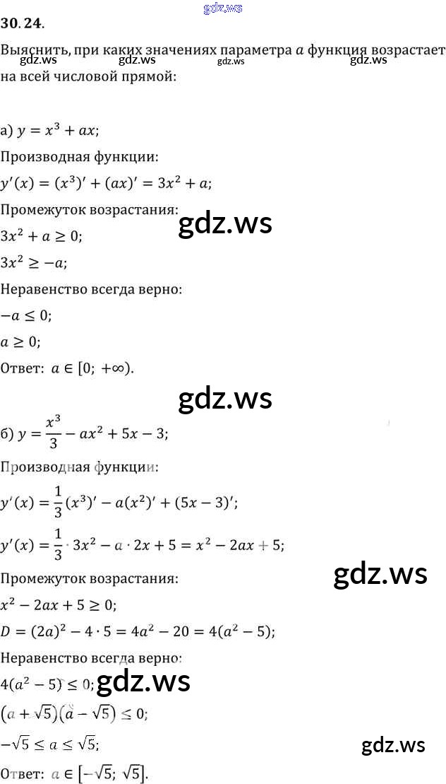 Готовый и полный ответ к §30. Применение производной для исследования функций на монотонность и экстремумы Глава 5 - Алгебре 11 класс Мордкович Задачник Базовый уровень ФГОС