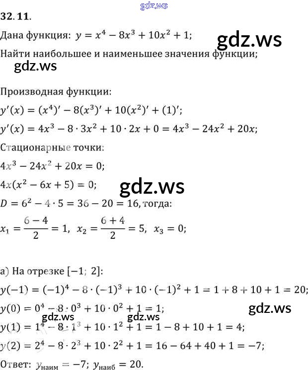 Готовый и полный ответ к §32. Применение производной для нахождения наибольших и наименьших значений величин Глава 5 - Алгебре 11 класс Мордкович Задачник Базовый уровень ФГОС