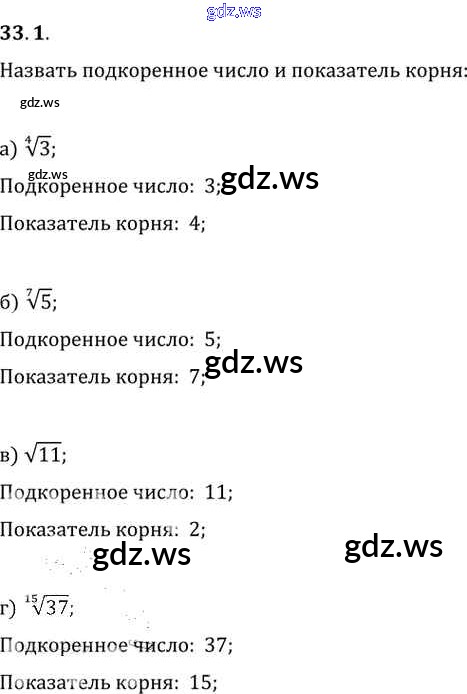 Готовый и полный ответ к §33. Понятие корня n-й степени из действительного числа Глава 6 - Алгебре 11 класс Мордкович Задачник Базовый уровень ФГОС
