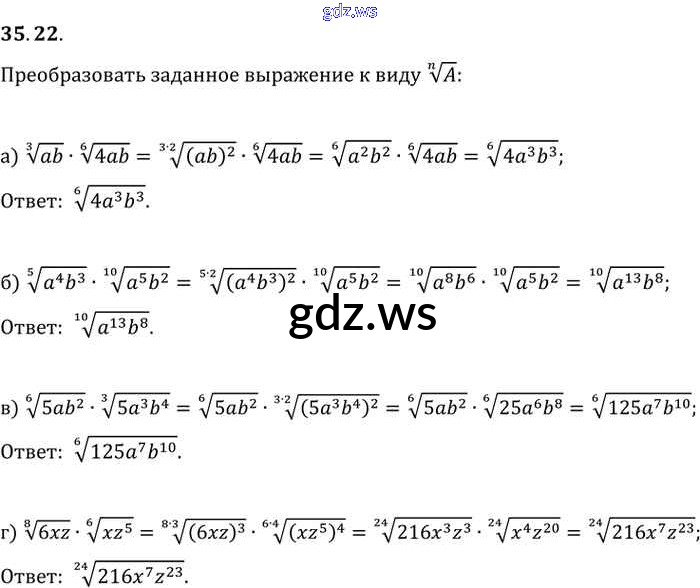 Готовый и полный ответ к §35. Свойства корня n-й степени Глава 6 - Алгебре 11 класс Мордкович Задачник Базовый уровень ФГОС