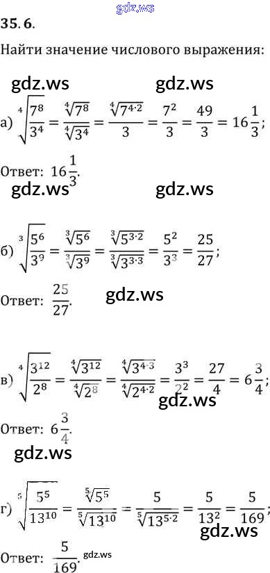 Готовый и полный ответ к §35. Свойства корня n-й степени Глава 6 - Алгебре 11 класс Мордкович Задачник Базовый уровень ФГОС