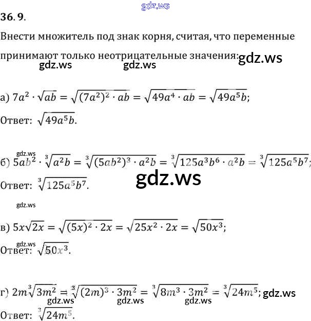 Готовый и полный ответ к §36. Преобразование выражений, содержащих радикалы Глава 6 - Алгебре 11 класс Мордкович Задачник Базовый уровень ФГОС