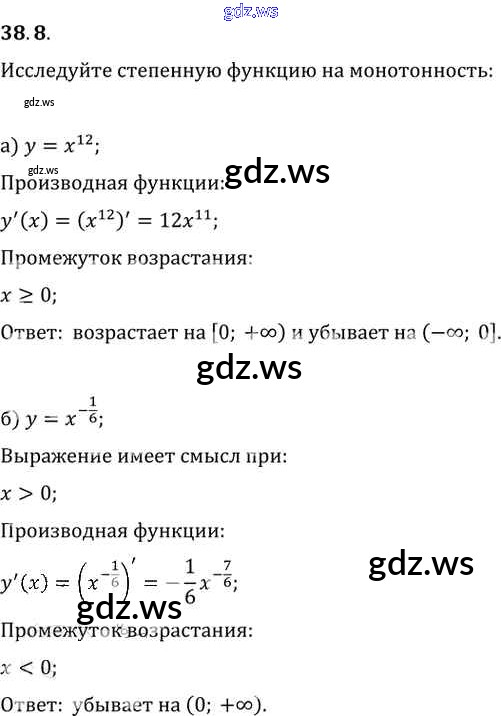 Готовый и полный ответ к §38. Степенные функции, их свойства и графики Глава 6 - Алгебре 11 класс Мордкович Задачник Базовый уровень ФГОС