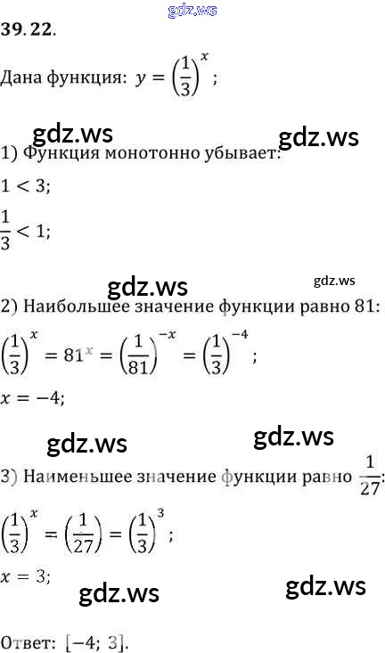 Готовый и полный ответ к §39. Показательная функция, ее свойства и график Глава 7 - Алгебре 11 класс Мордкович Задачник Базовый уровень ФГОС