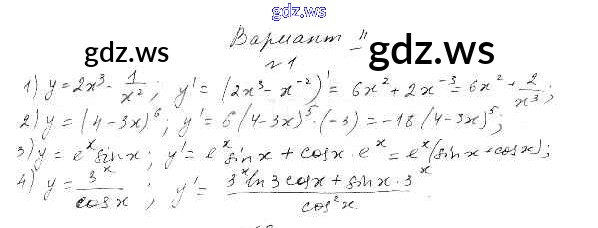 Готовый и полный ответ к Контрольная работа 2 Глава 8. Производная и её геометрический смысл - Алгебре 11 класс Шабунин Дидактические материалы Базовый уровень ФГОС