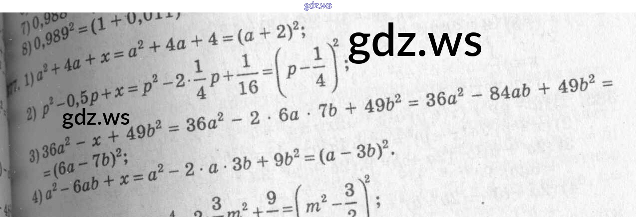 Готовый и полный ответ к §22. Квадрат суммы. Квадрат разности Глава 4. Разложение многочленов на множители - Алгебре 7 класс Алимов Учебник ФГОС