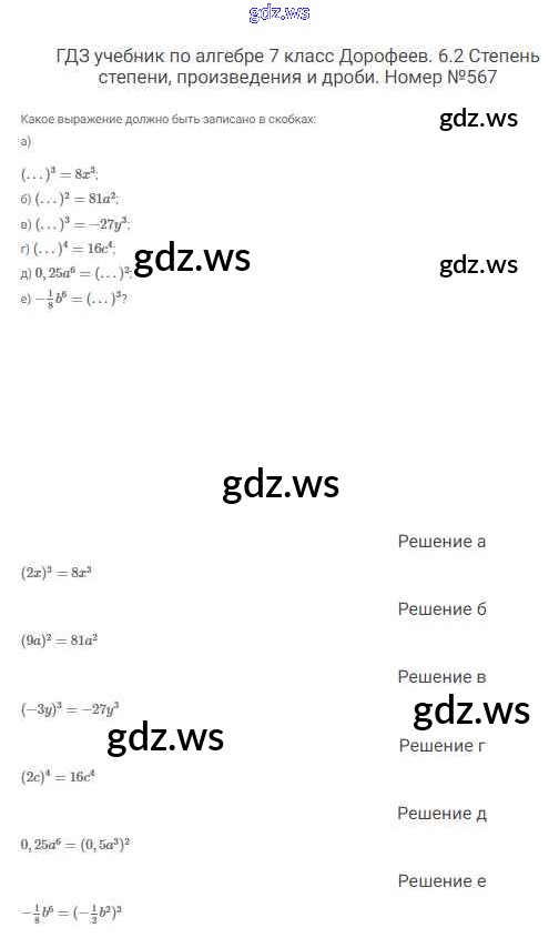 Готовый и полный ответ к Упражнения - Алгебре 7 класс Дорофеев Учебник Академический школьный учебник ФГОС