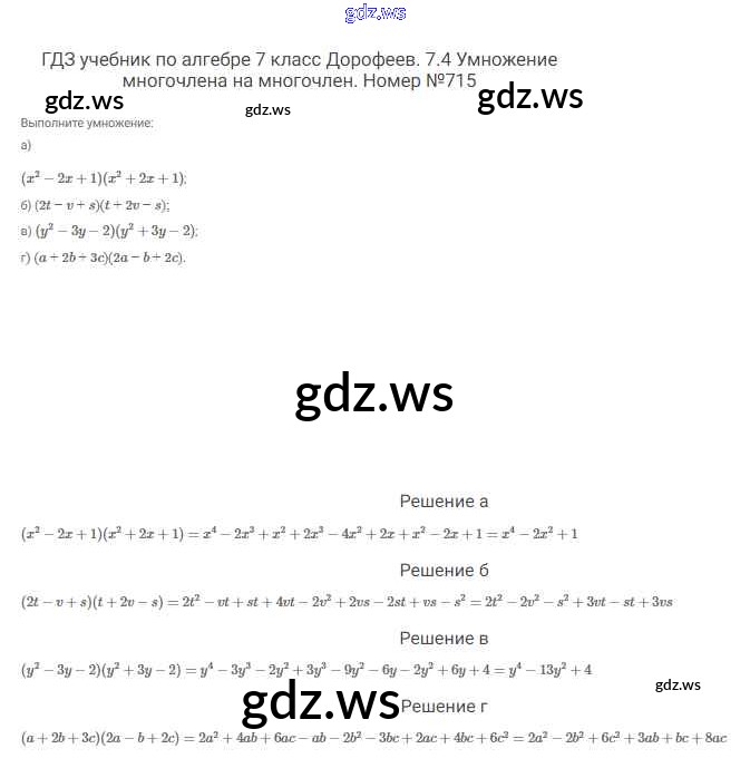 Готовый и полный ответ к Упражнения - Алгебре 7 класс Дорофеев Учебник Академический школьный учебник ФГОС