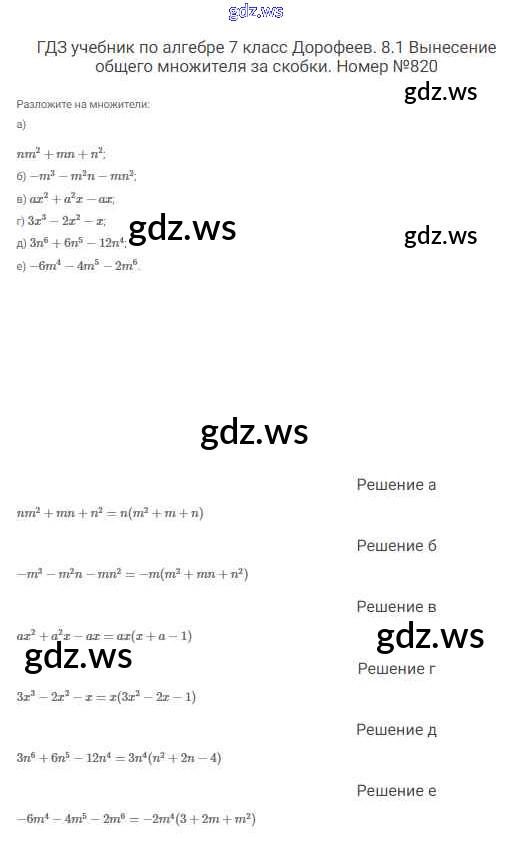 Готовый и полный ответ к Упражнения - Алгебре 7 класс Дорофеев Учебник Академический школьный учебник ФГОС