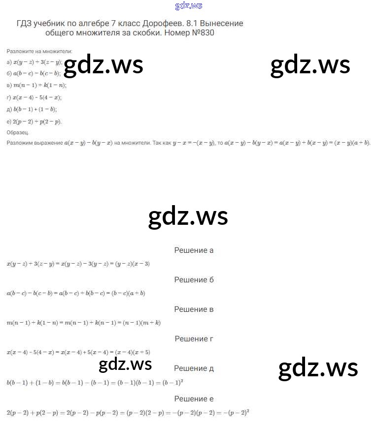Готовый ответ Упражнения - Алгебре 7 класс Дорофеев Учебник Академический школьный учебник ФГОС