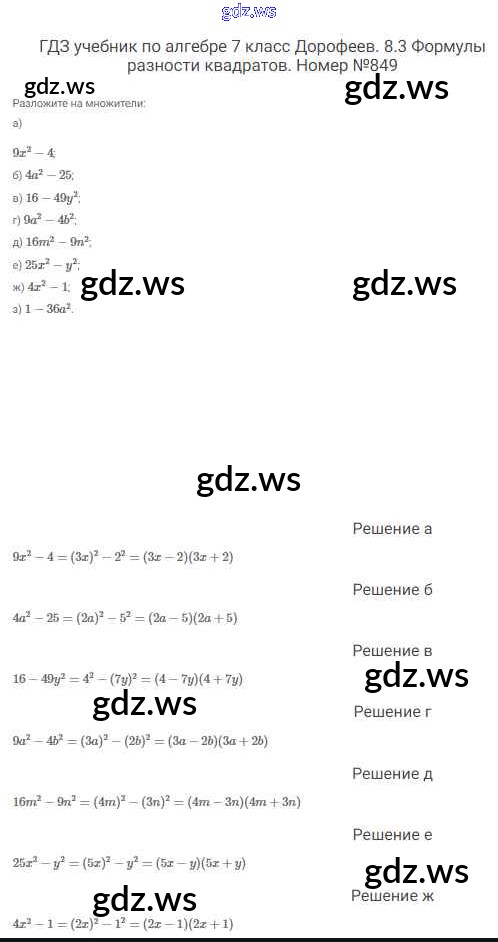 Готовый и полный ответ к Упражнения - Алгебре 7 класс Дорофеев Учебник Академический школьный учебник ФГОС