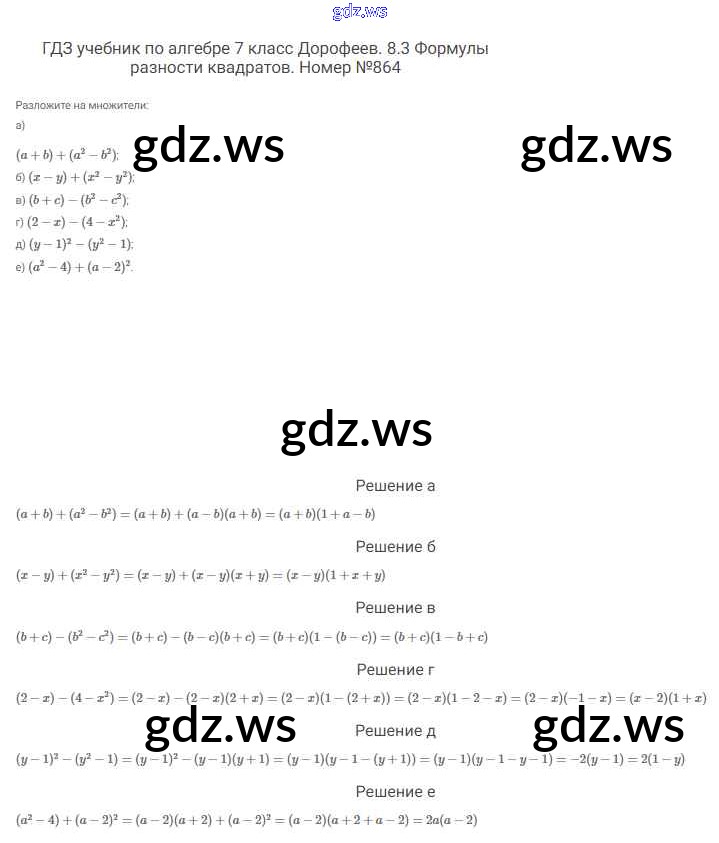 Готовый и полный ответ к Упражнения - Алгебре 7 класс Дорофеев Учебник Академический школьный учебник ФГОС