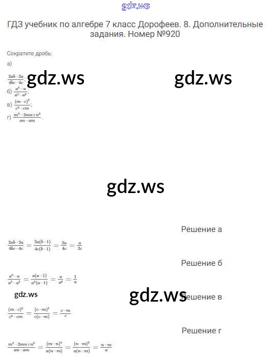 Готовый и полный ответ к Упражнения - Алгебре 7 класс Дорофеев Учебник Академический школьный учебник ФГОС