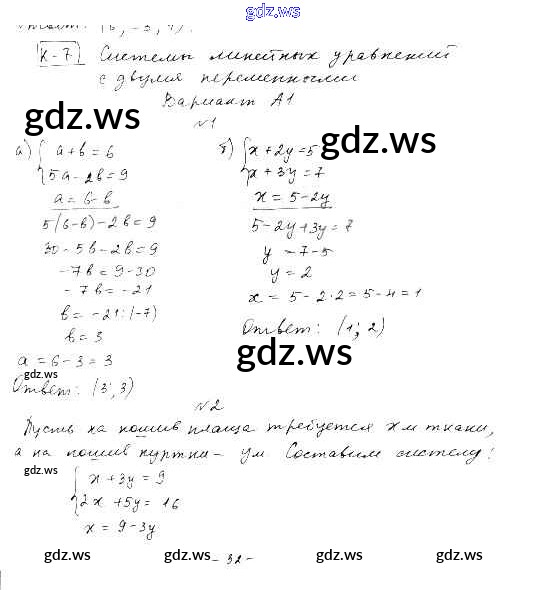 Готовый и полный ответ к КР-7. Системы линейных уравнений с двумя переменными Контрольные работы - Алгебре 7 класс Ершова Самостоятельные и контрольные работы ФГОС