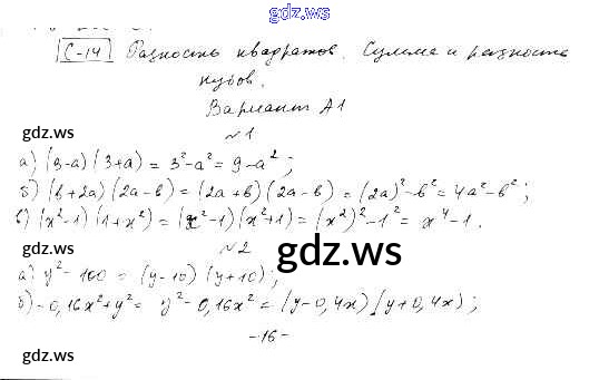 Готовый ответ СР-14. Разность квадратов. Сумма и разность кубов Самостоятельные работы - Алгебре 7 класс Ершова Самостоятельные и контрольные работы ФГОС