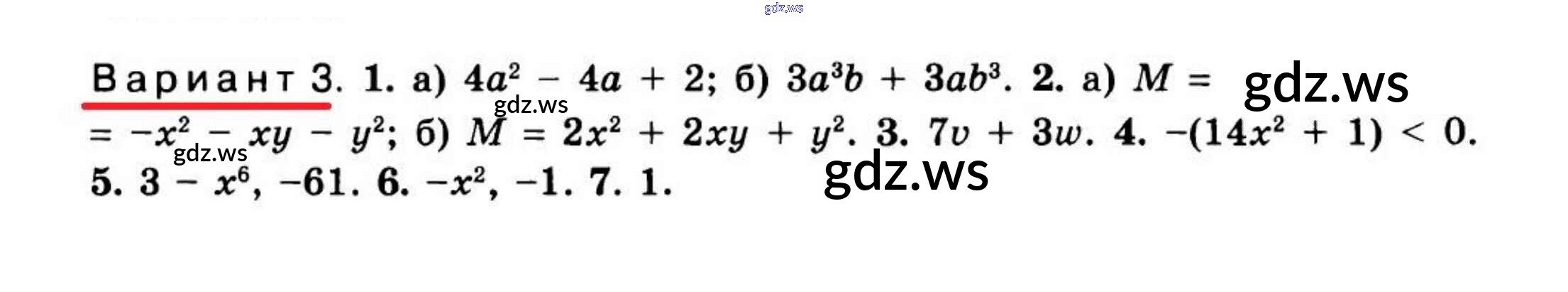 Готовый и полный ответ к КР-3 Контрольные работы. Варианты - Алгебре 7 класс Феоктистов Дидактические материалы Углубленный уровень ФГОС