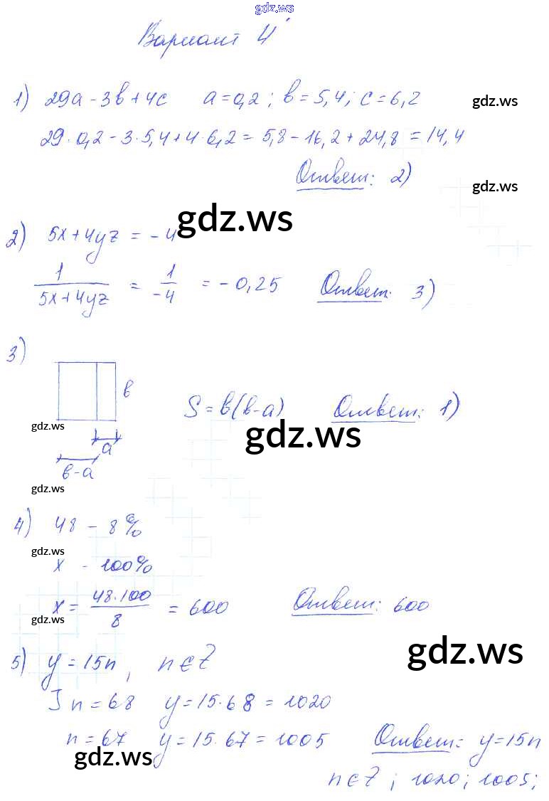 Готовый и полный ответ к СР-1 (варианты) Самостоятельные работы - Алгебре 7 класс Глазков Самостоятельные и контрольные работы УМК ФГОС
