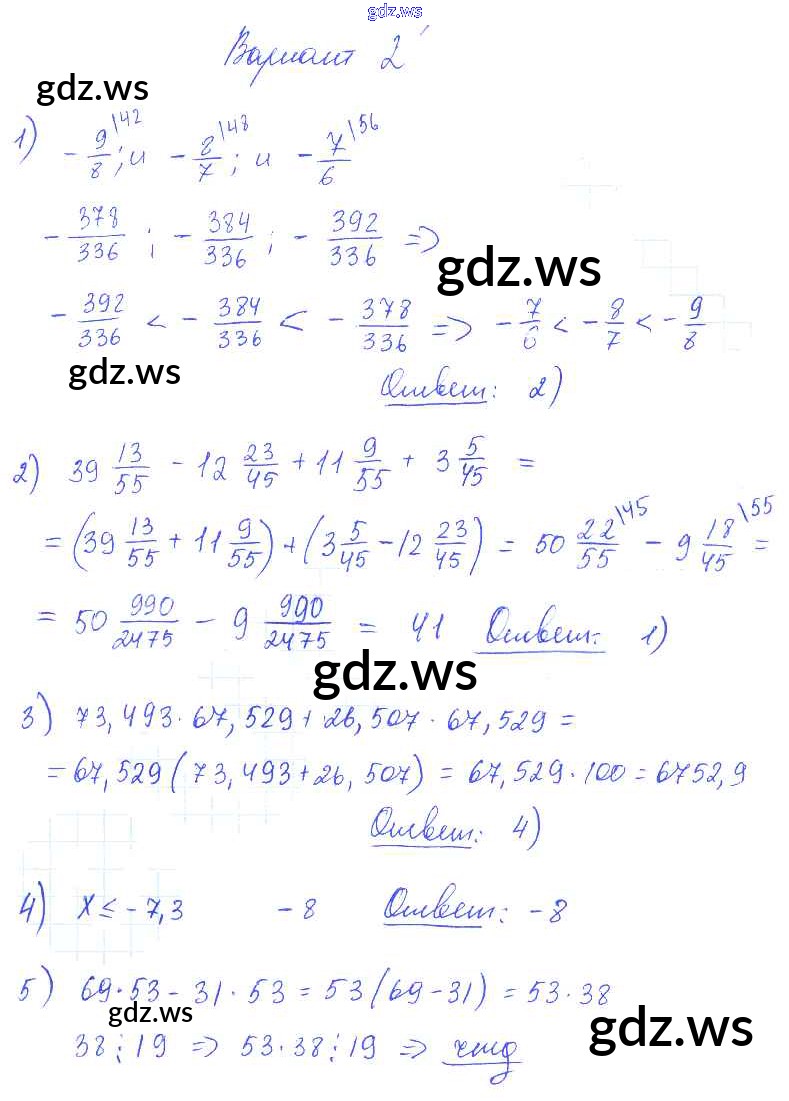 Готовый и полный ответ к СР-2 Самостоятельные работы - Алгебре 7 класс Глазков Самостоятельные и контрольные работы УМК ФГОС