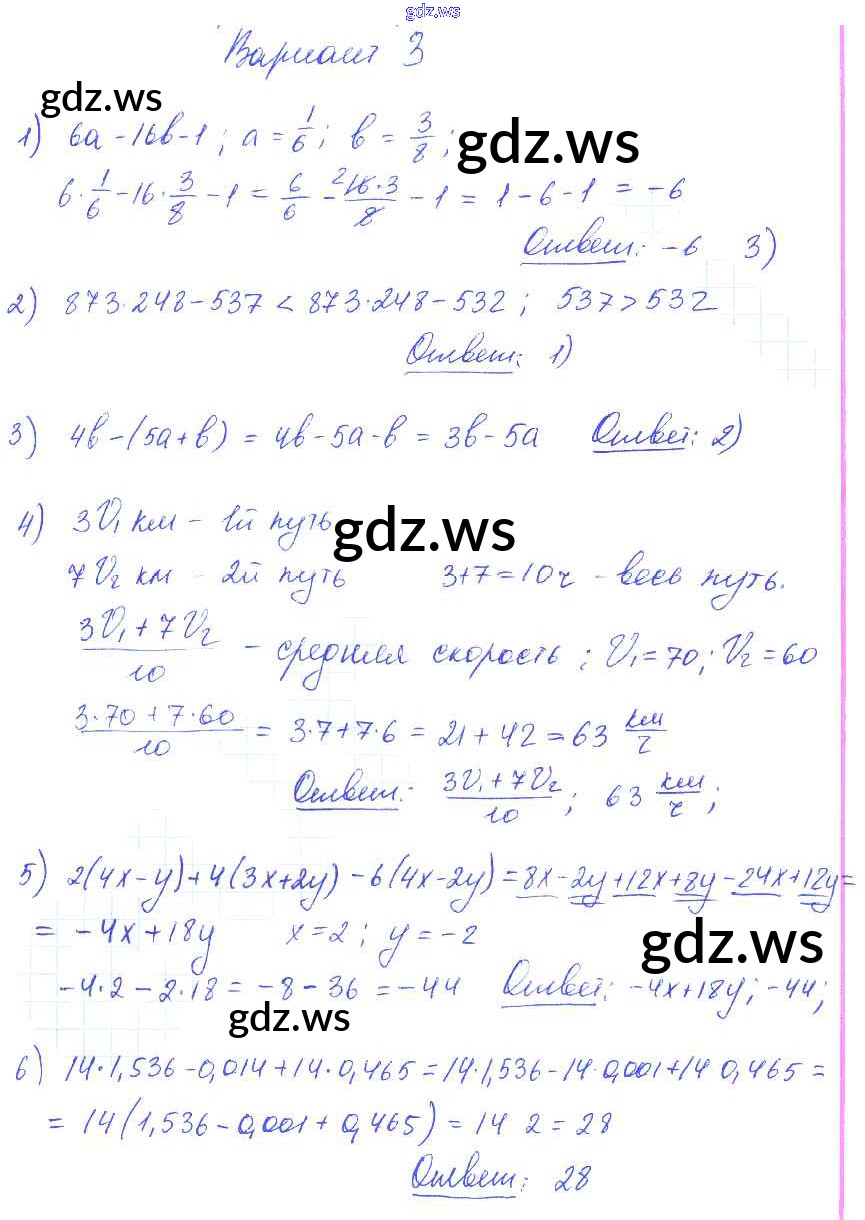 Готовый и полный ответ к КР-1 (варианты) Контрольные работы - Алгебре 7 класс Глазков Самостоятельные и контрольные работы УМК ФГОС