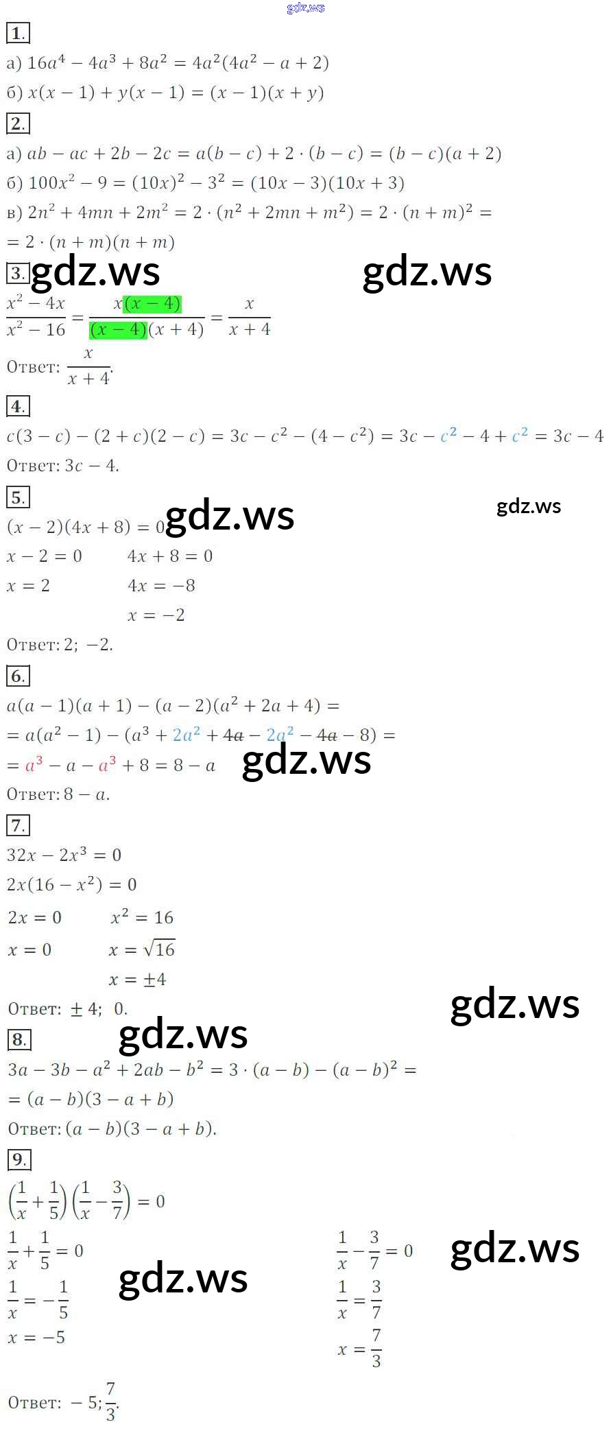 Готовый и полный ответ к Контрольная работа №8. Разложение многочленов на множители - Алгебре 7 класс Кузнецова Контрольные работы ФГОС